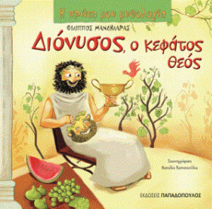 Η ιστορία του Διονύσου, του κεφάτου θεού, με απλά στιχάκια από τον Φίλιππο Μανδηλαρά και χιουμοριστική εικονογράφηση απ’ τη Ναταλία Καπατσούλια.