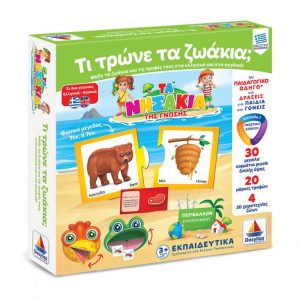 - 30 µεγάλα κοµµάτια puzzle διπλής όψης µε ζώα και τις τροφές τους.